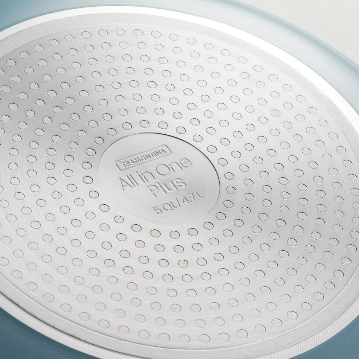 The 5 Qt Forged Aluminum Jumbo Cooker All in One Plus Pan is a versatile 5 piece set designed to do multiple things in the kitchen. It”s a great size for sautéing, frying, braising and more. The cold forged construction pan has a high temperature silicone exterior finish and ILAG® Swiss Crystals non-toxic ceramic non-stick interior that easily wipes clean and doesn”t leach toxic chemicals into your food. The induction-ready stainless steel base plate with magnetic core allows you to use the all in one plus pan on any cooktop. Each set includes a unique aluminum lid with a stainless steel handle that doubles as a spoon rest, a multi-purpose bamboo utensil for flipping and stirring, a convenient nesting steamer insert, and a bamboo trivet that”s perfect for taking the pan directly from kitchen to table. It”s oven-safe up to 400° F/204° C and dishwasher-safe. The Tramontina 5 Qt Forged Aluminum Jumbo Cooker All In One Plus Pan is made in China and comes in seven stylish colors.