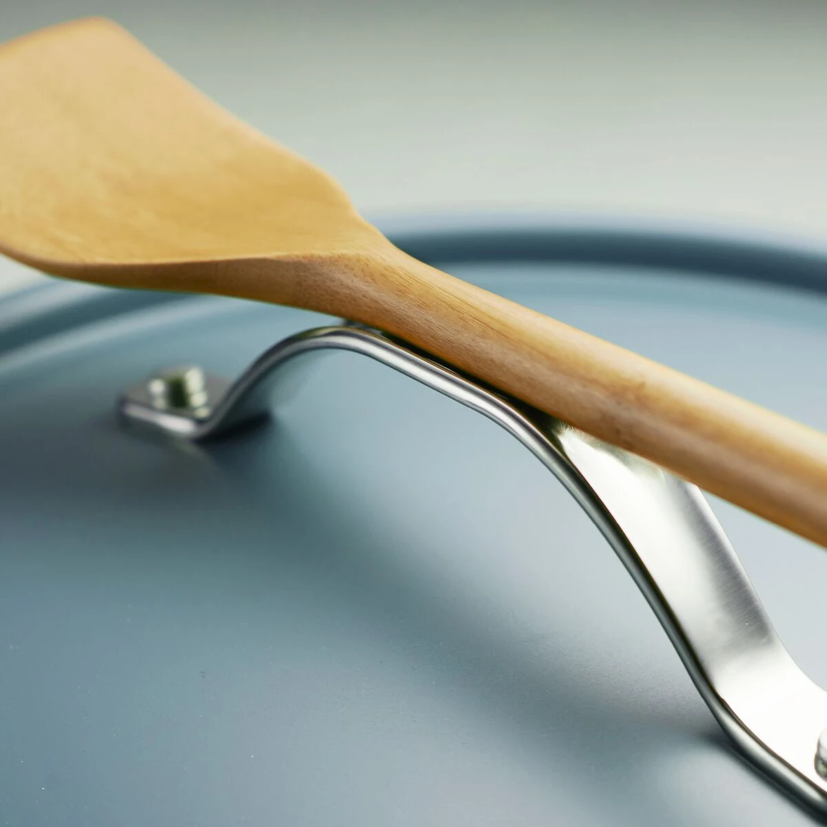 – Aluminum lid with stainless steel handle that doubles as a spoon rest