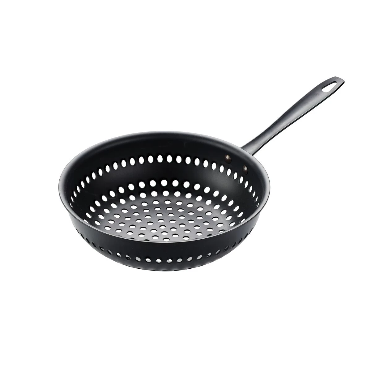 The Tramontina 10″ Round Perforated Carbon Steel Stir Fry brings the pleasure of stir fry cooking to the great outdoors. Made of sturdy carbon steel with heavy duty rivets that secure the handle, able to endure the heat of a grill as you prepare your favorite meats and vegetables al fresco. Holes throughout the bottom and sides evenly distribute heat and enhance smoky flavor. Made to last in Brazil, this wok comes with a lifetime warranty.