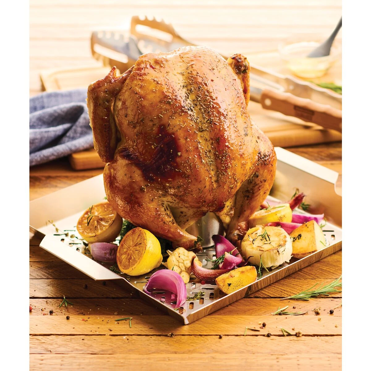 – Includes cylinder for roasting chicken
