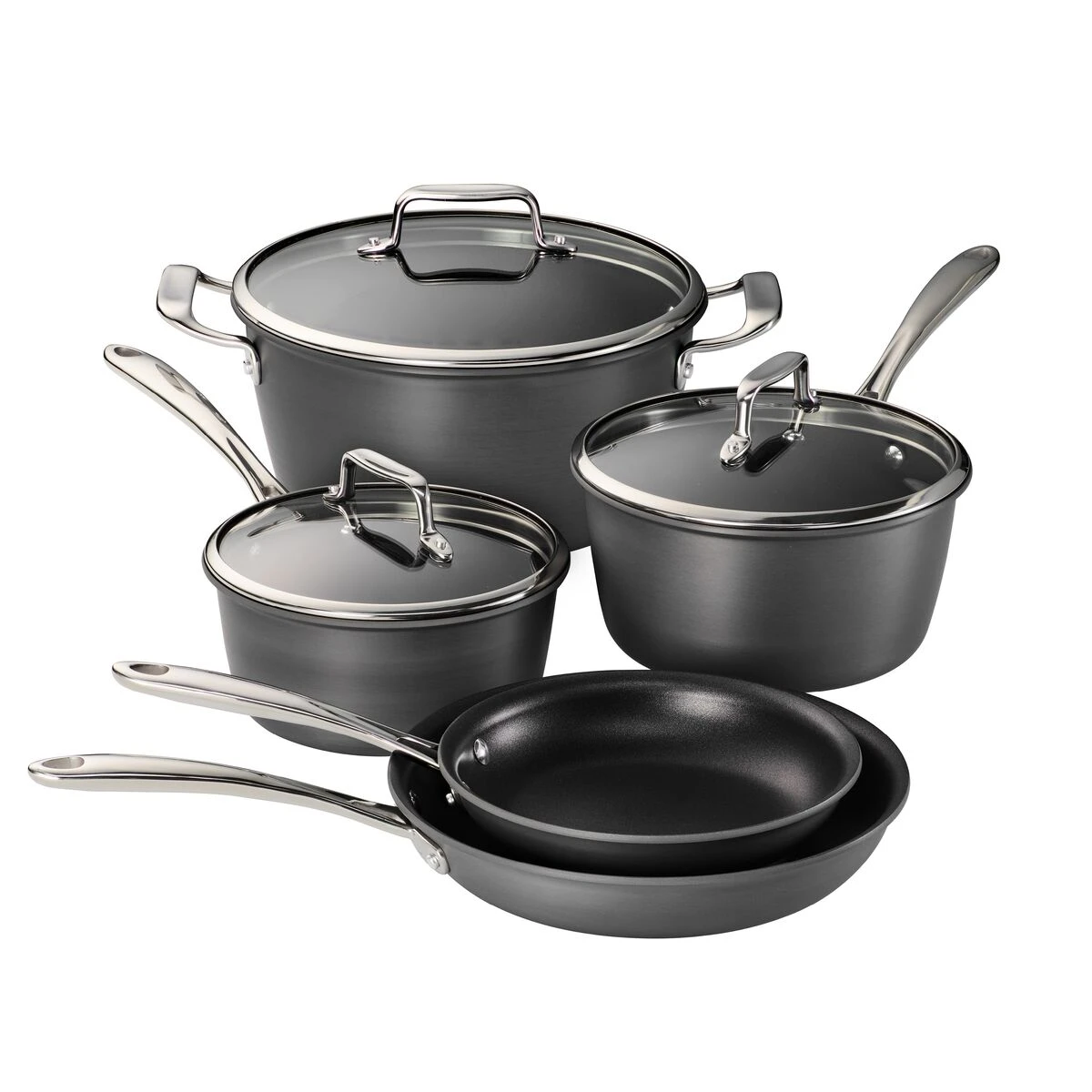 You”ll get healthier cooking, quick clean-up, and resilience from Tramontina”s Gourmet 8 Pc Heavy-Gauge Hard Anodized Aluminum Nonstick Cookware
